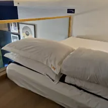 Fasilitas: Dua tempat tidur besar di lantai atas dan bawah, dengan kasur yang nyaman dan bantal yang lebih kencang.