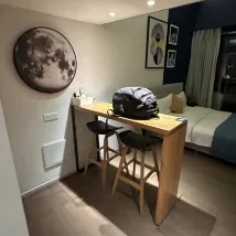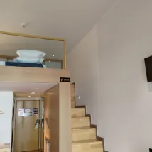 Pertama, saya akan membahas kelebihan hotel ini: sangat dekat dengan pusat konvensi dan pameran, lebih dari satu kilometer jauhnya, dan sekitar 800 meter dari pusat perbelanjaan. Tersedia juga mesin cuci untuk mencuci pakaian. Kedua, saya juga akan membahas kekurangannya. Tangga di lantai terakhir terlalu tinggi, tidak cocok untuk anak-anak atau orang tua tidur di ranjang atas. Lampu sensor di bawah tangga rusak, yang membangunkan saya di tengah malam. Tiba-tiba menyala, lalu redup lagi. Air dari kepala pancuran di kamar mandi sangat kecil, dan tidak nyaman untuk mencuci.