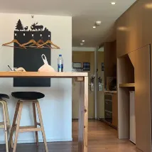 Kamarnya sangat bersih, meski tidak terlalu besar. Rasanya seperti rumah kecil tapi fasilitasnya lengkap ada banyak pusat perbelanjaan besar di dekatnya untuk makan, serta stasiun kereta bawah tanah.