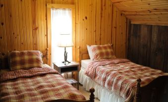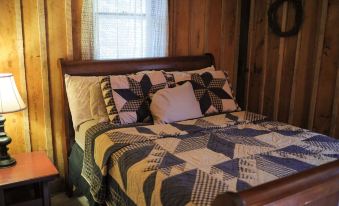 Hidden away in the woods, we invite you to relax and enjoy the outdoors in our secluded Hide Away Cabin. Accommodations include a first floor Queen bedroom and double loft upstairs with 4 Twin beds. Hide Away includes a fully equipped kitchen and dining area with seating for 6. Electric "woodburning" fireplace does not provide heat, it is purely for decoration/ambiance*. The remodeled full bath is located on the first floor. Spend some time on the inviting front porch enjoying the sounds of nature or enjoy a relaxing soak in the salt water hot tub. Enjoy a night gazing at the stars and enjoying s’mores from the firepit located just steps from the front porch with firewood provided for our guests. Propane grill and WiFi also provided. This cabin accommodates a maximum of 8 guests.