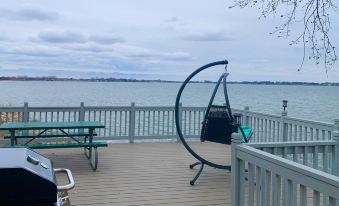 Cozy cabin on lake poinsett. Perfect place for your relaxing getaway. The house is fully outfitted with your own private dock, hot tub, fire pit, ping pong table, volleyball net, and a game room with lake views. Inside the heated garage there is a game cleaning table and a freezer for guests to use. Living room and kitchen has walk out access to balcony deck with eating area and grill overlooking the lake. This property is walking distance to the public beach access and boat lauch and about 10 minutes from the local grocery store and restaurants.About pets:No pets allowed.About checkOut:Check out before 11:00 AM.About children:Children allowed: ages 0-17.Pack and play available for use..About customRules:Put garbage and recycling out at the curb if you are staying on a Sunday..About checkIn:Check in after 4:00 PM.About smoking:Smoking is not permitted.About minBookingAge:Minimum age to rent: 18.About events:No events allowed.