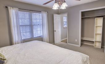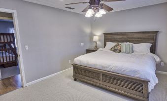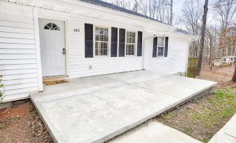 When you enter the home, a welcoming open concept awaits you. A large foyer, kitchen and breakfast area with seating for 6 at the kitchen table and 3 barstools. Full kitchen includes oven w/ electric flat top range, microwave, refrigerator, dishwasher, and coffee maker. Kitchen furnished with dining ware, flatware, pots/pans, and basic cookware. Dishwasher pods included for easy clean up. Private back porch off kitchen with table and chairs and gas grill. The foyer boasts a floor-to-ceiling travertine and shiplap fireplace with a live edge white oak mantle, furnished with 2 reclining armchairs and coffee table. Bamboo floors through all living spaces and brand-new carpeting in bedrooms. Step down into the lower den and be captivated with breathtaking views and the wall of windows! Game table perfect for a family game of cards or board game (many board games and Poker case w/ decks of cards provided) Large screen mounted TV with Amazon Fire TV and wireless internet included. Lower den seating includes a leather sofa and oversized chair. Laundry room with brand new washer and dryer for your use off the lower den. Bed linens, towels/washcloths included. Bring extra towels for the lake. The master bedroom has a King size Southerland mattress with a lake view. Private, en-suite bath with tiled shower. Bath #2 is newly renovated and has a tub/tiled shower combo. Bedroom #2 has a queen bed. Bedroom # 3 has a double bed and a bunk bed with twin mattresses, perfect for a “kids room”. Large closet has a few bins of toys, books and games. Pack-and-play and high chair available.