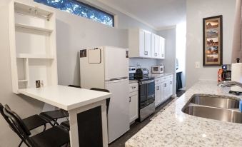 The master bedroom has a full sized Tuft and Needle mattress and a large closet. The second room can act as a lounge room or, boasts a comfy sleeper sofa that converts to a queen with a Tuft and Needle topper. If you are going to be using the second bedroom to sleep in, please let us know so we can prepare that room as a bedroom. Each room, and the living room, has a TV with full access to Netflix, Amazon Prime, and Hulu. The bathroom includes a toilet and a stand-up shower. The space is small but the doors open and, with attached door jams, expand the room to include the sink and vanity area. The kitchen includes a refrigerator/freezer, oven/stove, microwave, coffee maker, and toaster oven. The entire space is yours to enjoy and should you need anything, let us know.