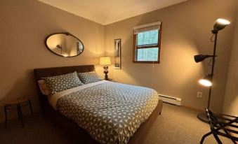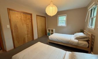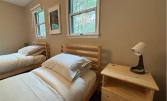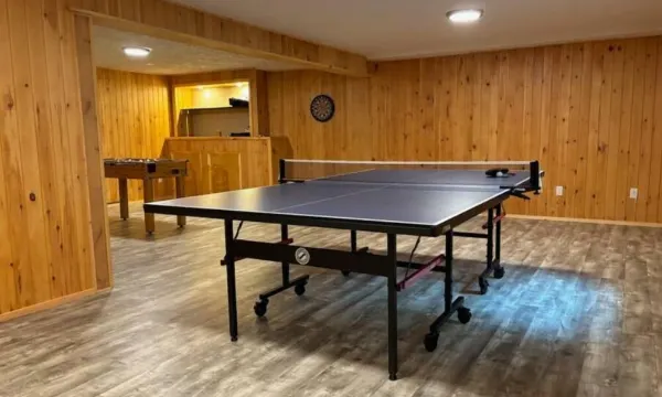 Peaceful 3BR, 1.5BA cottage just a 5-min walk or short drive to a sandy lake beach. Includes a Game room (ping pong table and foozeball), a projector for movie nights, a fire pit & nature all around—perfect for families or couples to relax and recharge and be surrounded by nature. With a queen bed, twin bed, and full bed, guests can relax in comfort. The property features amenities like WiFi, AC in living room an master bedroom, and heating for an enjoyable stay.