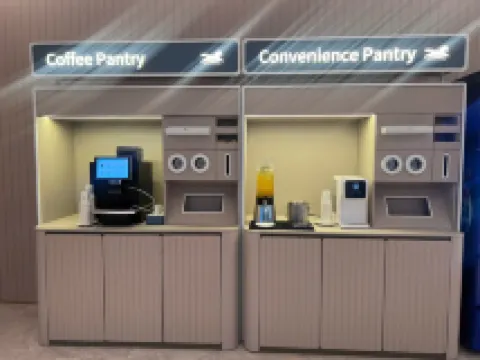 The facilities are clean and well-equipped, with a pantry stocked with a microwave oven, iced tea dispenser, coffee machine and instant cup noodles.