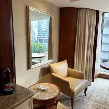 Tidak perlu banyak bicara lagi, dispenser air di kamar ini sangat nyaman bagi ibu dengan bayi. Suhu air 45 derajat yang siap pakai untuk membuat susu bayi tersedia langsung, jadi sangat mudah jika harus menyiapkan susu di tengah malam. Jika Anda menginap di bulan ulang tahun Anda, akan ada kue kecil gratis yang sangat lezat. Bagi yang berbulan madu atau merayakan ulang tahun pernikahan, akan diberikan sampanye gratis. Setelah mendaftar sebagai anggota, Anda akan mendapatkan boneka beruang hotel sebagai hadiah. Di sekitar sini banyak tempat makan, minum, dan hiburan. Lokasinya juga sangat dekat dengan Victoria Harbour, dan kamarnya luas.