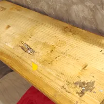 Apakah Anda menyebutkan bahwa pipa toilet masuk melalui lubang yang dilapisi kayu?