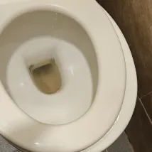 Pipa toilet dari lantai atas Di dalam kamar, sepatu saya menempel di lantai saat saya berjalan