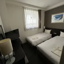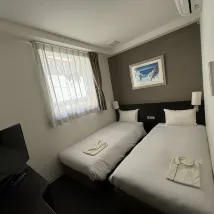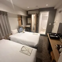 Kami memesan kamar tiga orang, yang tidak besar tetapi cukup. Kedua tempat tidur dapat disatukan dan sofa bed berukuran panjang 1 meter, cukup untuk orang dewasa. Tersedia dua jenis sarapan: Cina dan Jepang. Jenisnya banyak dan pelayanannya juga bagus sekali. Lokasinya sangat bagus, tepat di sebelah Stasiun Ichikawa Shiohama di Jalur Keiyo, dan hanya 8 menit dan 2 pemberhentian dari Stasiun Disney Maihama. Jika Anda perlu menyimpan barang bawaan saat pergi ke Disneyland, salah satu keuntungan menginap di sini adalah Anda tidak perlu membawa barang bawaan Anda ke loker di pintu masuk Disney, karena ketika banyak orang pergi ke Stasiun Maihama untuk masuk ke kereta bawah tanah setelah tur, akan sulit untuk masuk dengan barang bawaan yang besar. Anda dapat menitipkan barang bawaan Anda di meja resepsionis setelah check out di pagi hari. Setelah bermain di Disney, ambil 2 pemberhentian dari Stasiun Maihama kembali ke Stasiun Ichikawa Shiohama, kembali ke hotel untuk mengambil bagasi Anda, lalu naik JR. Sangat sedikit orang yang naik kereta di stasiun ini, dan Anda dapat menghemat biaya penyimpanan bagasi.