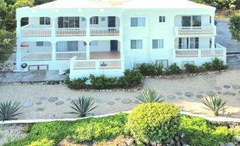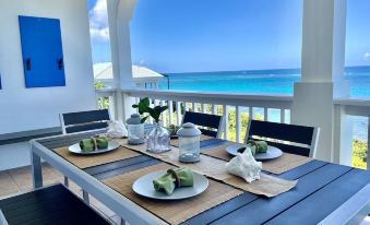 Clearview Villas offers two separate units. The upstairs, which features 4 bedrooms and 4 baths sleeps up to 8. There are 2 master bedrooms with king size beds and en suite baths, 1 bedroom with queen size bed and 1 room with 2 twin beds. All rooms are colorfully decorated and are equipped with ceiling fans as well as Air conditioning. In addition to the rooms, this 3000 sq. ft. unit has a spacious open floor plan perfect for entertaining. Relax and enjoy the gorgeous views from the living/dining area and feel the breeze that flows through the windows!! The kitchen is generously equipped for the vacationer who likes to entertain at home, yet the island also offers some exquisite restaurants for those who desire to dine out!