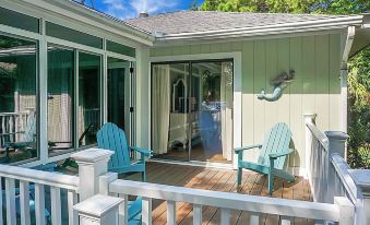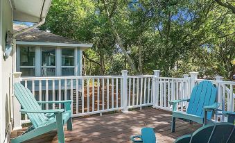 The other additional bedrooms share a second bath. One guest room features twin/full/twin trundle bed. The additional twin bed is stored underneath the lower bed (full) that is rolls out for anyone to use. A great addition if visiting with children! The other guest room features queen size bed, 24"HD/Roku TV, and opens to an outside deck that leads down to the secluded yard. All beds have luxury 400 count cotton sheets.
