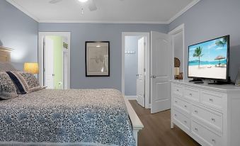The Master Bedroom offers a recently remodeled bathroom (see picture), queen size bed, 40" HD/Roku TV and opens to a spacious & bright sunroom.