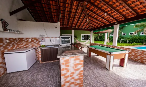 It has swimming pool, with hydro, recreation area with pool, bathroom with shower, barbecue, wood stove, refrigerator, 4 burner gas stove and all kitchen accessories, internet with wifi, large yard with plants and even chickens in a chicken coop. Driving distance to downtown Penedo just 5 minutes.About pets:Pets allowed: dogs and cats less than 22 lbs per pet (limit 2 pets total).Proibido: pets camas e sofás, Taxa de higienização.About checkOut:Check out before 11:00 AM.About children:Children allowed: ages 0-17.About checkIn:Check in after 2:00 PM.About smoking:Smoking allowed: in designated areas.About minBookingAge:Minimum age to rent: 18.About events:No events allowed.