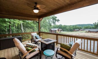 COVERED PORCH: Fire Pit, patio table, Comfy Chairs