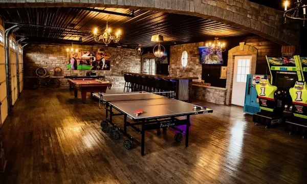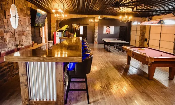 Adult Game Room with15ft Bar, Pool Table, Poker Table