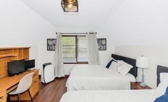 The space has 3 bedrooms and 3.5 baths and can sleep up to 8 people. The two twins in the common area are rollaway beds. The open concept living room has 25 foot ceilings with multiple views of the lake and a large dining table and eat in kitchen. There is a 55 inch TV in the basement with a foosball table, giant Jenga, and a classic Nintendo system. There is a covered outside dining table in the gazebo with a grill and a couch. The other decks have a fire pit and sun loungers. There is a boat ramp close by to drop in your own boat or you can rent a pontoon boat. Only 2 boats allowed on the dock for safety reasons. We also have 2 kayaks. There is parking for up to 8 cars in the lot next to the house. The Jasper County short term license number is STR 2024-01 .About pets:No pets allowed.About checkOut:Check out before 10:00 AM.About children:Children allowed: ages 0-17.About customRules:There will be fines if there are over 8 people on the property, outside parties, music outside, or parking anywhere other than on the parking pad..About checkIn:Check in after 4:00 PM.About smoking:Smoking allowed: in designated areas.About minBookingAge:Minimum age to rent: 25.About events:No events allowed.
