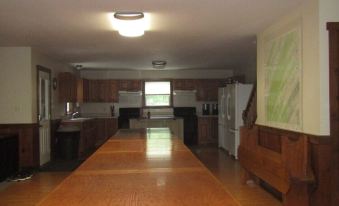 NEW in 2024,pickle ball / half basketball court. awesome campsite in the woods where you can relax & enjoy the peace & quiet. sitting by the campfire or enjoying a game of outdoor shuffleboard! in the winter sit by the crackling wood fireplace in the living room! enjoy the spacious kitchen, dining & living room! great place to take your church youth group or have a family reunion.