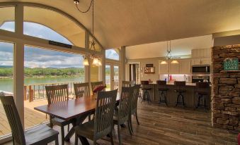 The main house features three large bedrooms, all with a lake view and deck access, and two bathrooms. The main house has a lavish kitchen, a large living room and a ping pong table. The guest house, connected to the main house via a covered walkway, features two bedrooms, one bathroom and a huge game room with a wet bar, foosball table, 75” TV and extra refrigerator.