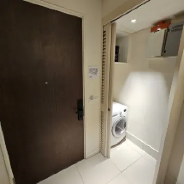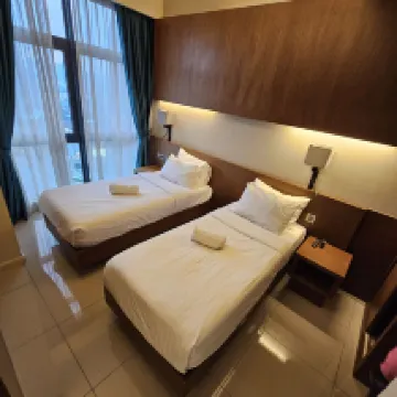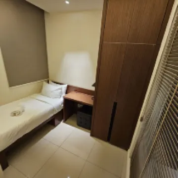 Hotel ber***a apartemen ini memiliki dua kamar tidur dan ruang tamu dengan total tiga tempat tidur single. Dapurnya memiliki peralatan dapur untuk tiga orang, dan ada mesin cuci dan pengering yang dapat digunakan beberapa kali selama menginap dua malam. Kasurnya biasa saja hingga keras dengan lapisan lateks. Ada TV di ruang tamu dan satu kamar, keduanya dilengkapi dengan kotak Xiaomi. AC di kamar sangat berisik dan tidak tenang. Kedap suara eksterior sangat baik, tetapi bangunan ini memiliki desain teras dan sangat bising jika penghuni di lantai lain berteriak di koridor. Anda memerlukan kartu kamar untuk memasuki gedung/lift, dan Anda perlu memasukkan kata sandi tambahan setelah menggesek kartu di pintu. Jalan dari hotel ke Bukit Bintang/Paviliun menanjak, jadi harap berhati-hati dengan orang tua.