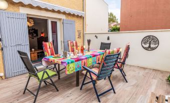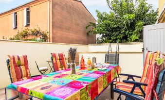 Terraced house "La Roue à Aubes", 2 storeys, terraced, built in 1980, renovated in 2023. In the resort 300 m from the centre of L'Isle-sur-la-Sorgue, residential area (villas), excellent location: right in the centre but still quiet, 3 km from the edge of the forest, 100 km from the sea, 6 km from the beach, 300 m from the river, south-east facing position. Private: swimming pool angular (2 x 3 m, depth 130 cm, seasonal availability: 15.May. - 15.Oct.) with alarm system. Pool maintenance by the owner/gardener. Grocery 400 m, supermarket 1 km, shopping centre 23 km, restaurant, bar 400 m, bakery 350 m, pedestrian zone 400 m, bicycle rental 1.2 km, bus stop "Robert Vasse" 500 m, outdoor swimming pool 1 km, lake de Monteux 16 km. Golf course (18 hole) 22 km, walking paths from the house 300 m, cycle lane 150 m, fishing possibilities 300 m. Nearby attractions: Parc aquatique Wave Island 18 km, Parc d'attraction Spirou 18 km, Le Pont-du-Gard 60 km, Le Palais des Papes d'Avignon 32 km, Partage des Eaux 1.6 km, Forêt des Cèdres 34 km. Well-known ski regions can easily be reached: Le Mont Serein 53 km. Well-known lakes can easily be reached: Etang de la Bonde 52 km. Hiking paths: Massif du Luberon 12 km, Les Alpilles 40 km, Mont Ventoux 50 km. "La Roue à Aubes", 4-room terraced house 98 m2, south-west facing position. Beautiful furnishings: living/dining room, east facing position with separate WC, TV and international TV channels (flat screen). Exit to the terrace. Kitchen (oven, dishwasher, 4 induction hot plates, toaster, kettle, freezer, electric coffee machine) with hatch. Exit to the terrace. Upper floor: 1 room with 1 double bed (2 x 90 cm, length 200 cm). 1 room with 1 french bed (1 x 140 cm, length 190 cm). 1 room with 1 french bed (1 x 180 cm, length 200 cm).) with separate WC and shower. Small terrace 30 m2, east facing position. Barbecue, sitting area. Facilities: washing machine, iron, children's high chair, baby cot, hair dryer. Internet (WiFi). Parking (1 car) at 50 m. Please note: maximum 2 pets/ dogs allowed. Smoke alarm. The pool mentioned in the description is for private use. Offer by a private individual according to Art. 155, IV of CGI. 84054000137F3
