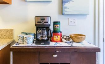 Ocean-facing private patio with grill and seating. Fully-equipped for a perfect getaway. Parking included.