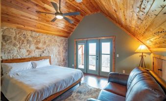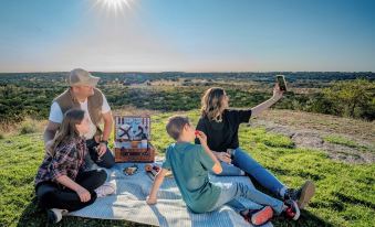 Escape to Artemis Cottage: a luxurious safari retreat in the Texas Hill Country. Nestled on a sprawling 3,700-acre ranch, Artemis Cottage offers an extraordinary getaway blending luxury, adventure, and unparalleled wildlife encounters. Enjoy breathtaking views and the unique opportunity to interact with our four friendly resident giraffes and African white rhino during an included** private safari experience featuring hand-feeding.
