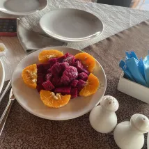 Staf hotel sangat ramah. Ketika saya sedang makan di Restoran Prasmanan Rumah Air, dua staf restoran mengatakan bahwa mereka ingat bahwa saya pernah ke restoran tersebut pada bulan Oktober tahun lalu Restoran, memiliki sikap pelayanan yang sangat baik. Saya mendengar Kami berangkat hari ini dan semangkuk buah pitaya dipotong untuk kami secara gratis.