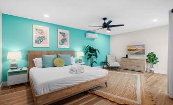 - Primary Bedroom: King bed, en-suite bathroom, and direct access to the pool area for a seamless indoor-outdoor experience.