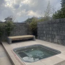 Kamarnya besar dengan halaman dan kolam air panas. Lingkungannya sangat indah, tetapi halamannya terasa kotor. Mungkin terlalu tua. Pintu masuknya agak compang-camping. Tempat tidurnya sangat empuk dan sedikit tidak nyaman untuk tidur, tetapi sangat besar! ! Menurut saya, harga ini cukup bagus untuk bulan Februari. Ada banyak pilihan sarapan dan Anda dapat melihat pegunungan. Lingkungan hotelnya indah!