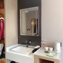 Tempat parkir berjarak sekitar 3 meter setelah belok kanan dari hotel. Sangat nyaman untuk naik lift langsung dari tempat parkir ke lobi. Staf meja depan sangat antusias dan memperkenalkan makanan dan atraksi terdekat. Kamarnya bersih dan rapi, fasilitasnya sangat lengkap. Yang paling memuaskan adalah sarapannya. Sarapannya ada di lantai enam, luas sekali dan variasinya lengkap. Rasanya enak dengan 5 bintang.