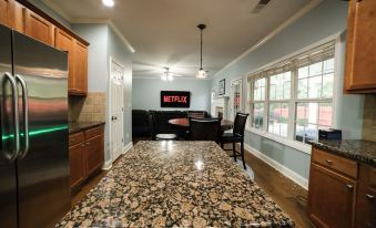Bedrooms 3, 4, & 5: These bedrooms are located on the second floor of the home. Each features a comfortable queen-sized bed, a 50-inch TV with internet access and Netflix, a convenient closet, and a huge window for natural light.