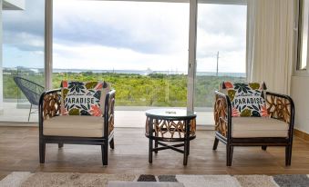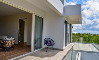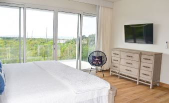 Cove Bay Villa II "The Penthouse" is the sister to Cove Bay Villa I. The Penthouse is a new construction that was recently completed in, December 2023. The Penthouse is on the top floor to Cove Bay Villa I. Each villa has a totally separate dwellings that share a common area to the front and backyard space. As you enter the Penthouse, you will love the open-concept with a spacious living room and kitchen, which leads you to a panoramic view of St. Maarten from the spacious balconies. During your warm evenings, you can step into the generous hot tub on your balcony and cool off or relax with your family/friends. Inside, you will find 3 beautiful well-appointed ensuite-bedrooms and half bath. Each bedroom also has a 50 " flat screen TV and a 65" flat screen TV, with unlimited channels and free movie options. The master bedroom has a very comfortable and luxury King bed, that opens to your balcony and offers fully unobstructed views to St. Maarten and the beautiful 18-hole International golf course of Aurora Resort. The second bedroom is also, of a generous size with a comfortable luxury King bed. The third bedroom which has 2 comfortable twin beds and has it's own balcony with another beautiful and unobstructed view of St. Maarten. This villa can accommodate up to 7 persons (with a rollaway bed or Aero Bed Queen mattress). The modern kitchen is fully equipped with everything a great chef would need. Should you wish to pass on cooking, a private in-villa dining can be arranged per your request. Anguilla, has some wonderful chefs who would love to tease your palate with a wonderful Caribbean dining experience.