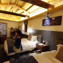 Hotelnya sangat indah, serasa menginap di rumah lumpur. Staf pelayanan sangat baik. Kamar bersih, baru, terpisah dengan baik. Di dalamnya terdapat sudut membuat teh, gantungan baju, dan di sebelahnya terdapat kamar mandi terpisah untuk mandi. Dan masuk ke kamar mandi, airnya deras. Ada zona untuk bermain anak-anak, tempat tidur yang nyaman, banyak colokan listrik, banyak sekali, dan sudut untuk memakai pakaian tradisional Cina dan berfoto. Lokasi sangat bagus, dekat dengan tempat wisata Anda bisa melewatinya. Merekomendasikan tinggal di sini.