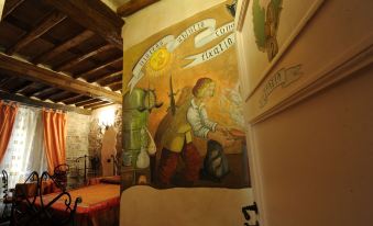 This hotel made the perfect finish to our trip to Tuscany. It was romantic, beautifully decorated, with so much atmosphere. The stone steps to the first floor are quite steep, but with plenty of artwork and quaint little window boxes on the way. Our room was incredible and the four poster bed was comfy (I like a hard bed!). The window overlooked a Main Street, but not noisy. The bathroom was adequate and very clean. Breakfast was great value for money, with pastries, and continental meats and cheeses, plus fruit and coffee. Gabriella was the perfect host, and I will recommend my daughters all to go to this hotel. Perfect location!