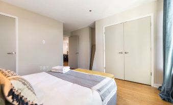 Two Large Bedrooms: Each bedroom is designed for comfort with queen beds, wood flooring, and walk-in closets for ample storage.