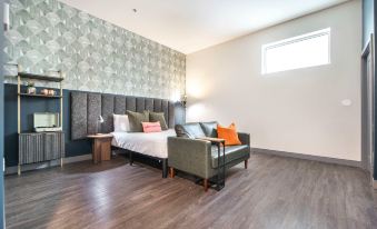 This 2-bedroom combo unit is designed to offer a one-of-a-kind experience, blending the calming charm of Otis Redding’s legacy with the bold, vibrant energy of Little Richard. Whether you're drawn to the peaceful, accessible design of the Otis-inspired room or the fun and funky flair of the Little Richard room, this connected space has something for everyone. Perfect for groups or families, you'll enjoy both privacy and togetherness in this unique downtown Macon getaway.