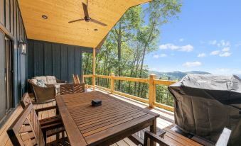 Welcome to an amazing resort community, Wolf Laurel and Hatley Pointe Resorts located in this gated community. HOME IS VACANT AT LEAST ONE DAY BETWEEN GUESTS:)) CONCIERGE SERVICES INCLUDED. 2022 build with 50 mile mountain views from the home, the westerly facing views will literally take your breath away, and sunsets every night that ebb and flow with the skylines and mountains. Home fully equipped/furnished. Modern cabin at Wolf Laurel Resort. Often described as "summer camp for adults", Wolf Laurel is a magical community with tons to do for the entire family. Concierge services also included, the hosts live in the Wolf Laurel Resort community, so you are not flying solo in a new community.