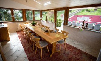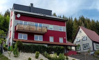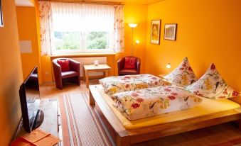 Loan books, card games and family / board games are available in the foyer. We offer you an extensive collection of information material on regional excursion destinations and restaurants, hiking maps and maps for tours by bike or motorcycle. We would also be happy to help you put together a few day trip destinations - whether you are a hiker, cyclist or motorcycle group. We also arrange hiking escort for group trips. There is a large garage for motorcyclists. The landlord also offers tools and helpful tips for small repairs. Drying wet clothes in the dryer possible.