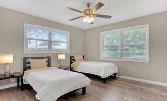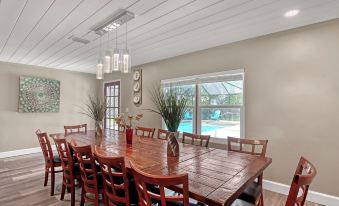 A newly renovated 5 bed/4 bath home located on a .75 acre lot in the heart of Melbourne. Featuring upgraded finishes throughout the home, pool (*heated for $25/day), hot tub, large kitchen, *Bunk Room (*additional $50/night + $50 cleaning fee) fire pit & more. Perfect for large families or groups seeking a home with ample space & entertainment for their group. Conveniently located near Downtown Melbourne, local shopping & minutes away from beaches. Less than 20 miles from USSSA Space Coast Complex.About pets:No pets allowed.About checkOut:Check out before 11:00 AM.About children:Children allowed: ages 0-17.Pak n play and high chair provided.About customRules:Local noise ordinance is 10 pm. Zero tolerance policy for noise complaints..No diving in pool.,Automatic $200 fine for smoking/vaping inside the home..About checkIn:Check in after 4:00 PM.About smoking:Smoking is not permitted.All Types Smoking Outdoors ONLY $200 fine.About minBookingAge:Minimum age to rent: 21.About events:No events allowed.Small gatherings allowed with prior owner approval.