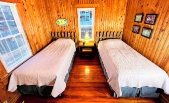 A quaint cottage with all wood interior. All the basics you need. Nice and clean!