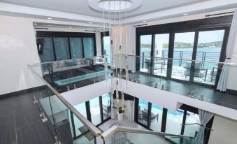 This villa offers a wrap-around pool and a waterfall. The villa’s vaulted ceiling design is enhanced on both levels by a grand modern chandelier that cascades from the second floor. Bedrooms 1-2 are on the lower level and bedrooms 3-4 are on the upper level. If you wish to book Great Bay Villa with another villa to rent a total of 2 villas -8 bedrooms 8 bathrooms with 8 beds, you must book each desired listing separately.