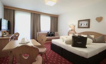 Kamar-kamar bergaya Apline yang bergaya pedesaan memiliki balkon dengan pemandangan gunung dan semua kamar memiliki kamar mandi pribadi dengan shower atau bathtub.