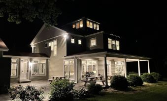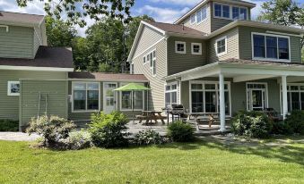 The lake house contains a North and a South Wing, connected by a breezeway, making it an ideal house for multiple families who may enjoy some independence. The ceilings are high and the space is light and airy. Windows abound, filling the house with beautiful light and a lake breeze. In the warm days of summer, you will remain cool in the house as we are fully air conditioned.