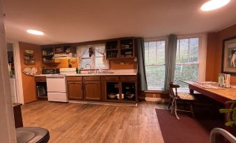Built in 1902 this 3 bedroom 1 bath cozy little gem overlooks the river in a panoramic fashion. It's sits on top of the hill just above the river, on a dead end street, but still only moments from I-64. It's in the perfect location to see any end of the New River Gorge National Park, is hidden in plain sight, and is located just outside the park boundaries. The house is a little crooked but very charming. It has plenty of utensils, cast iron skillets, and spices to cook or grill, best well water around, black out shades, wifi, games, large yard, covered porch overlooking the river, and many more… also new I started to build a trail that leads into the woods behind the property but they aren’t completely done however you may explore around hill behind you and the surrounding fields and don’t forget to look at all the fossils everywhere. You will enjoy waking up and seeing the river before your feet even hit the floor, having your coffee on the porch in the mornings, watching eagles and other birds, deer, and the abundance of other wildlife in our park, also playing and exploring with your family. Pets are welcome and will enjoy lots of space to play. I provide puppy towels and a pooper scooper. The yard is also now fenced in and the large front porch has a gate so your furry friend has options for going outside to lay in the sun. It really is a hidden gem. Some guest services available.About pets:Pets allowed: dogs (limit 3 total).About checkOut:Check out before 11:00 AM.About children:Children allowed: ages 0-17.About checkIn:Check in after 4:00 PM.About smoking:Smoking is not permitted.About minBookingAge:Minimum age to rent: 25.About events:No events allowed.