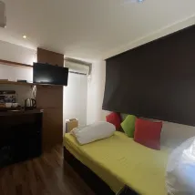 The location in fact is good, 20m walk from the entrance of Jui fen Lao jie. Room was converted from 2 small room with 1 wet and 1 dry toilets. There is windows but open it actually a wall of another building. In fact the building is very old and like kind of wooden house. I will definitely don’t back to this Min shu again.