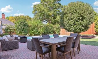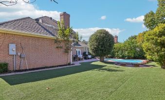 Welcome to our Grand Texas Home. Situated in a quiet and picturesque neighborhood with towering oak trees, this home embodies timeless luxury and classic charm. Upon entry, you will be welcomed by luxurious features throughout the home- such as a new and well-appointed kitchen, hotel-quality bedding, designer furniture and decor, a sanctuary-like patio, sparkling pool and spa, and a piano sitting room. Centrally located with easy access to popular DFW attractions, yet a private retreat to enjoy.