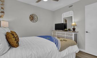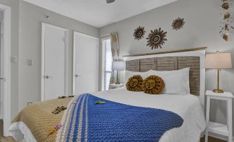 Step inside and feel the vacation vibes with charming beach-inspired décor and a bright, open layout. The cozy queen bedroom offers a restful night’s sleep, while a hallway built-in twin bunkbed and sleeper sofa adds extra space for kids or additional guests. A laundry closet provides added convenience for longer stays. The open-concept living room is filled with natural light thanks to glass doors that lead to the ocean-view deck—perfect for sipping morning coffee or enjoying evening cocktails as the sun sets over the Atlantic. The fully equipped kitchen allows you to cook up delicious meals and enjoy quality time with loved ones.