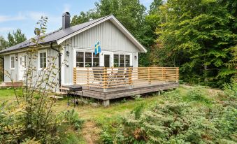 Fisherman's house "Gaslunda Tvåan", built in 2023. 8 km from the centre of Olofström, 25 km from the centre of Karlshamn, on a slope, 100 m from the lake, in a cul-de-sac, in the countryside. Bathing place. Private: natural state property 1'000 m2, garden (not fenced) with trees, meadow. Garden furniture, barbecue. Rowing boat, parking (for 2 cars) on the premises. Supermarket 8 km, bus stop 5.9 km, sandy beach 3.5 km, indoor swimming pool 8 km, lake Orlunden 3.5 km. Fishing possibilities 200 m. "Gaslunda Tvåan", 3-room house 70 m2. Bright, beautiful furnishings: living/sleeping room with Scandinavian wood stove, dining table, satellite TV and CD-player. Exit to the veranda. 2 rooms, each room with 1 double bed. Open kitchen (4 hot plates, oven, toaster, kettle, microwave, freezer, electric coffee machine). Shower/WC. Electric heating. Wooden floors. Balcony. Facilities: washing machine, children's high chair. Please note: smoke alarm, fire extinguisher.