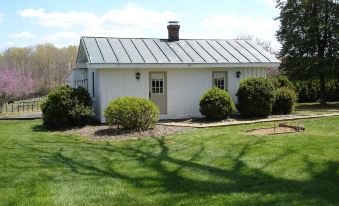 The foot-wide, hand-sawn boards that make up the ceiling reveal this cottage's original time of construction (1856) and its original purpose (housing for house servants of the Manor). Renovated in 2012, it now boasts a modern full kitchen and bath, split-system heat pump, and charming furnishings selected by our professional interior designer. Best of all, the cottage is on our 600 acre horse and cattle farm, where you have beautiful views in all directions, no sound of traffic, endless woodland trails, and quick and easy access to all the attractions of the Charlottesville area. Plus, it has a huge covered patio on the back side, with ceiling fans, lights, a gas grill, very comfortable furniture and views of several of our horse paddocks.