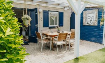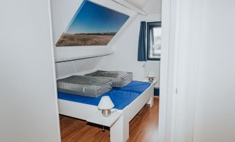 Outside there are 2 parking spaces available and special attention has been paid to small children when constructing the garden. For example, there is no water in the back garden and there are no dangerous points that can hurt small children. The back garden is fully lockable so that you as a parent can relax with confidence when your children play outside. In the barn there are all kinds of toys that you can also take to the beach. The covered terrace is illuminated, so that you can also use it in the evening.